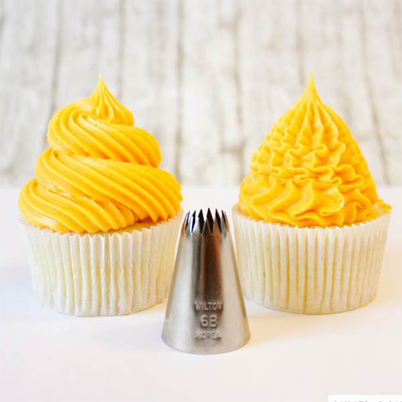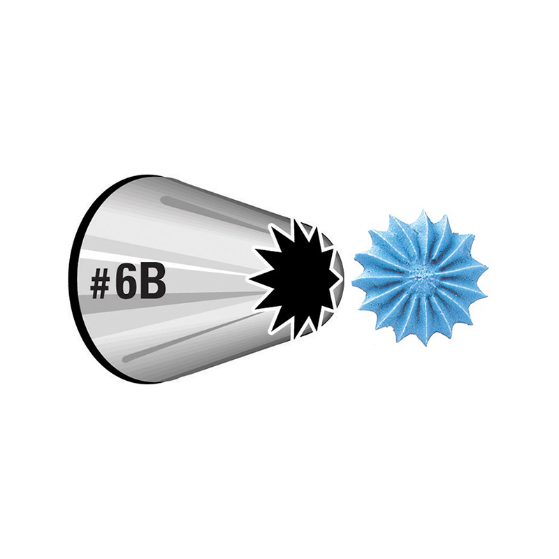 Boquilla redonda de estrella abierta, para la elaboración de técnicas de estrella, flores y bordes dentados. Consigue un acabado muy bonito y elegante para decorar tus cupcakes y tortas.