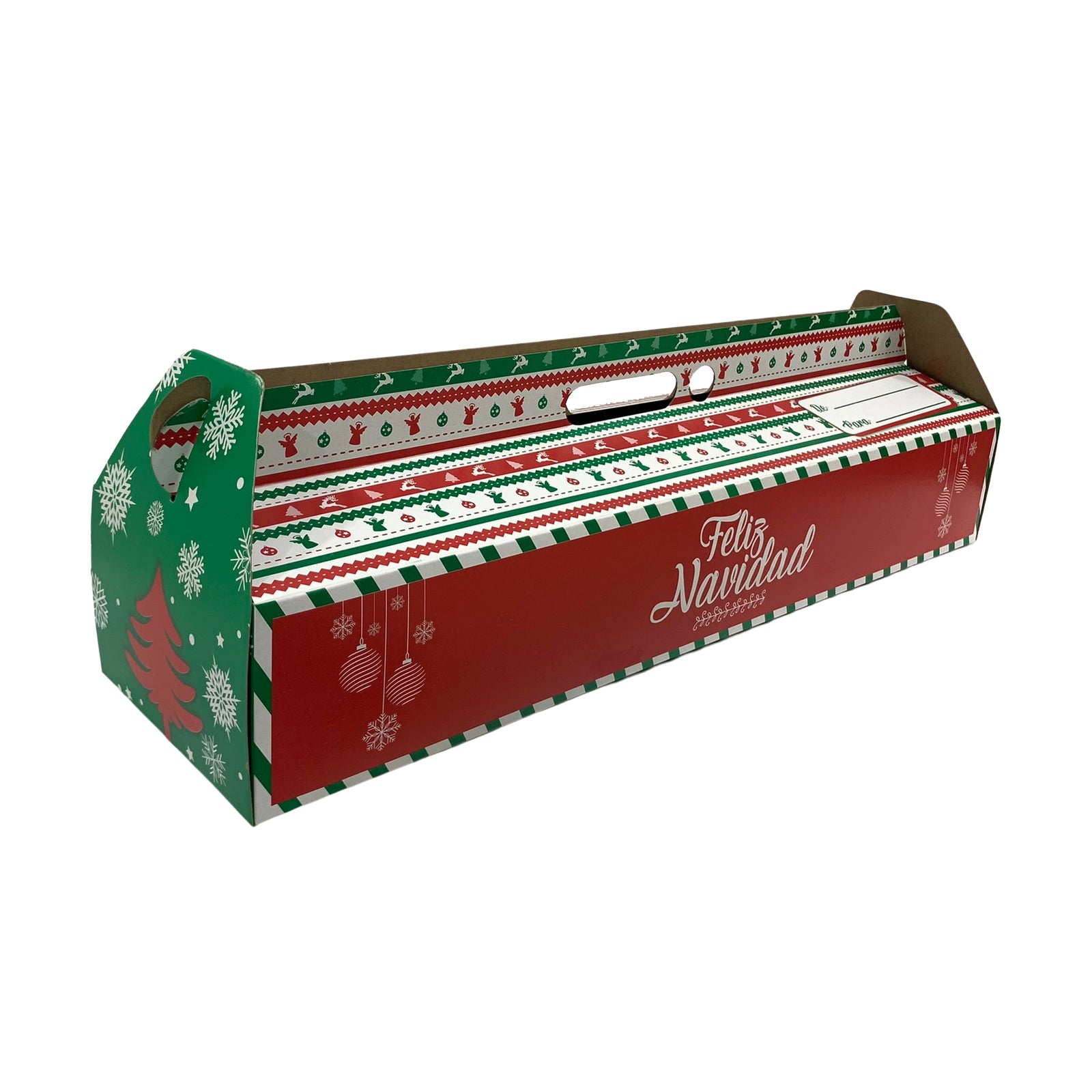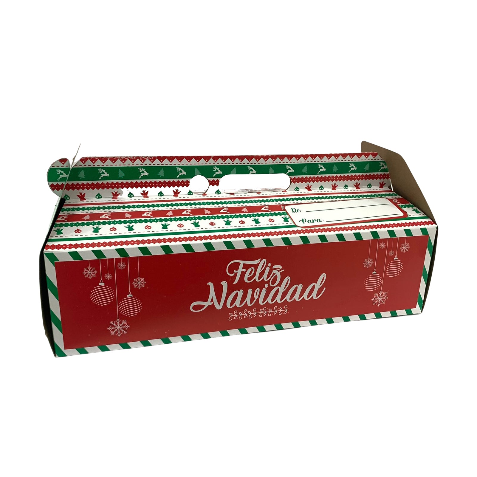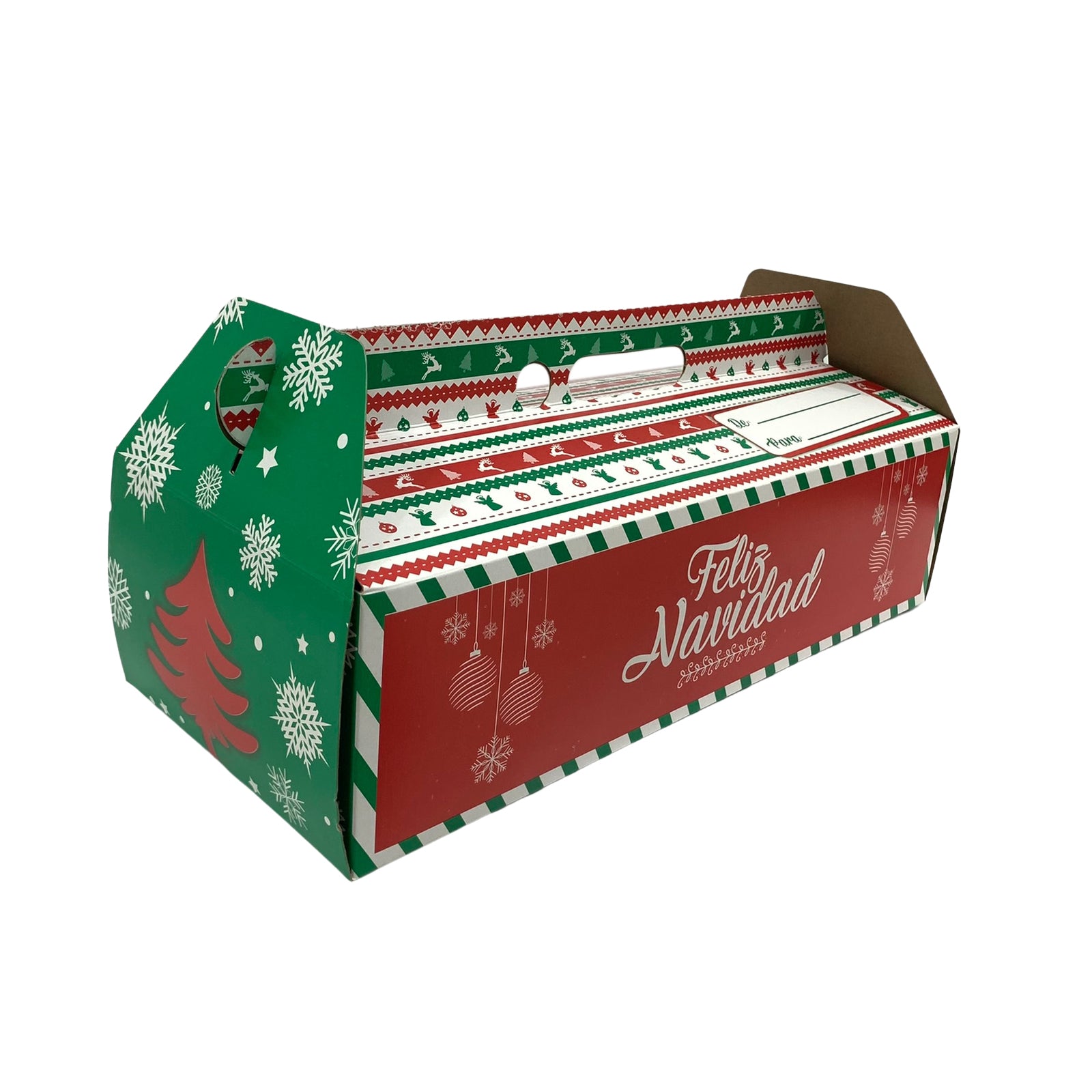 Caja con motivo navideño para pan de jamón.