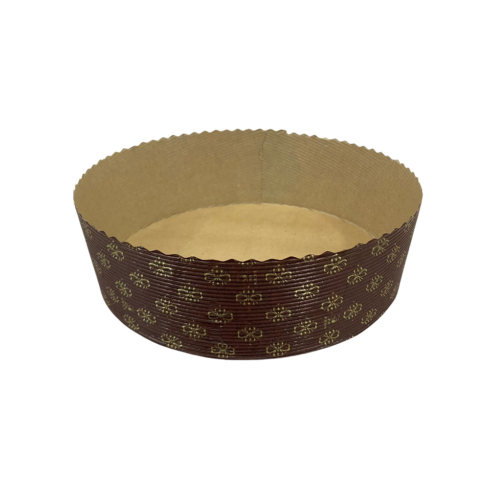 Molde para hornear panettone redondo bajo, fabricado en papel de gran resistencia con una base reforzada en cartón corrugado, diseñado especialmente para la elaboración de esta gran receta para tus ocasiones especiales como lo es la época navideña, también es adecuada para otro tipo de masas, como pan, muffins y cupcakes.
