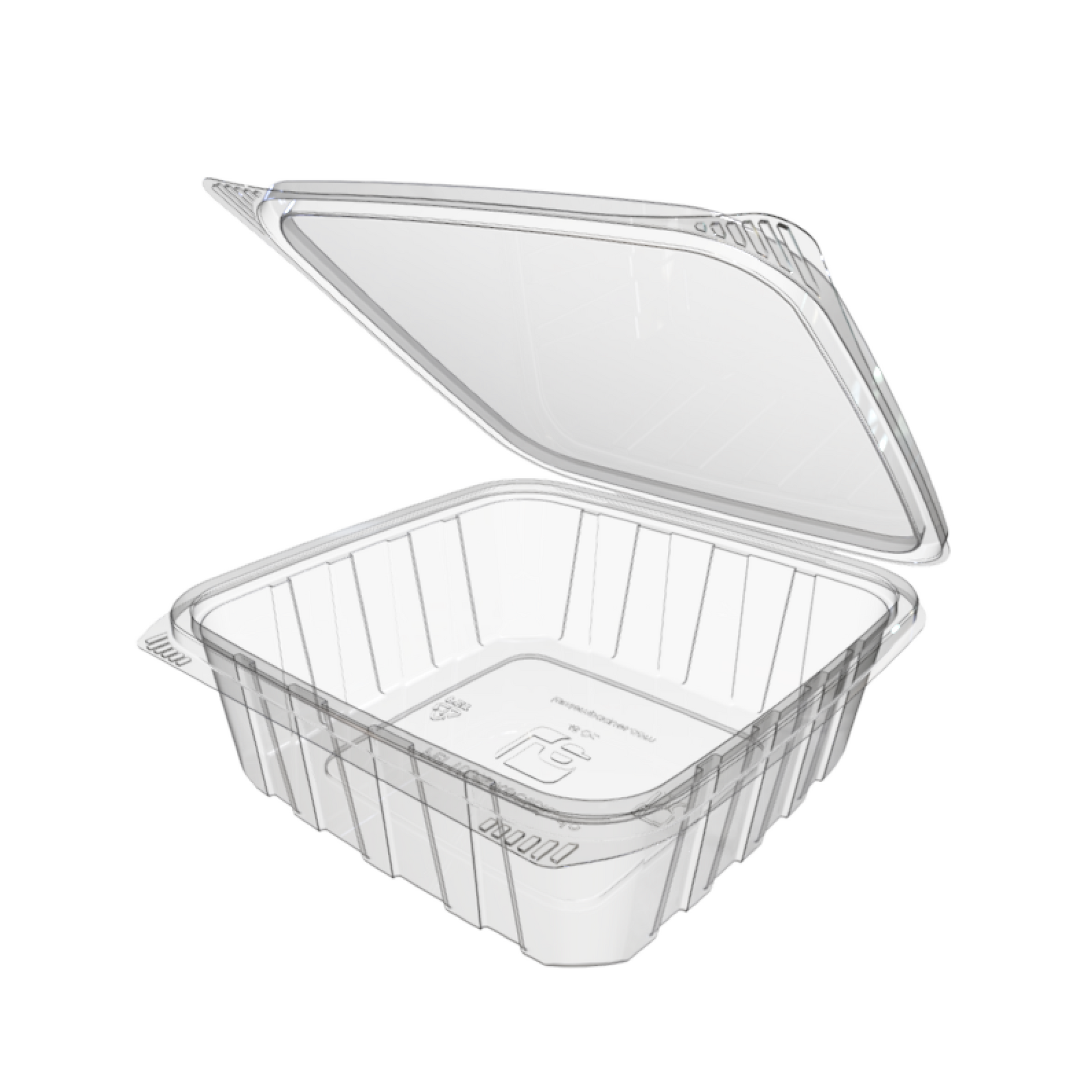 Empaque semi-hermético en PET 100% reciclado (RPET), ideal para proteger, conservar y exhibir los alimentos por más tiempo en el punto de venta.