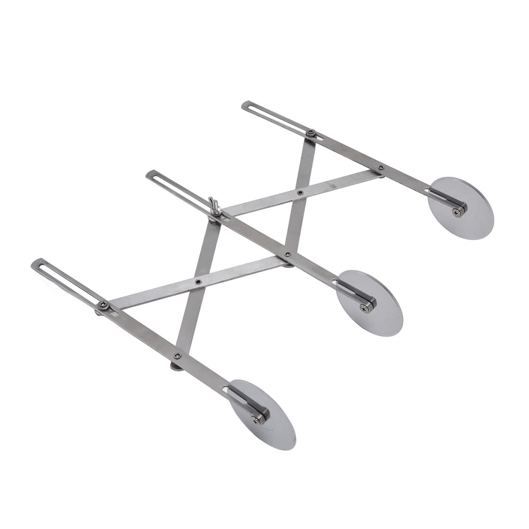 Cortador de 3 hojas ajustable en acero inoxidable, permiten ajustar el ancho del corte deseado. Su principal uso es para el corte de masas de hojaldre aunque también suele ser la herramienta Ideal para cortar pasta, brownies, dulces, pasteles. Tirillas todas del mismo tamaño, totalmente rectas y en un corto tiempo. Una vez plegado ocupa un mínimo espacio en su cajón o gaveta.