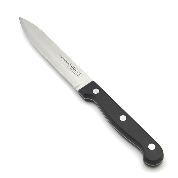 Linea profesional. Hoja de acero inoxidable con mango de baquelita. Sujeción de tres remaches para mayor durabilidad. Mango ergonómico para un agarre seguro y cómodo. Ideal para cortar, rebanar y picar vegetales y frutas.