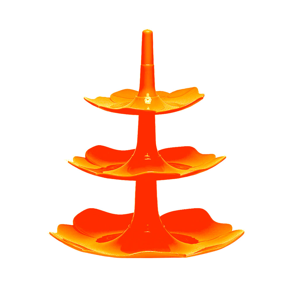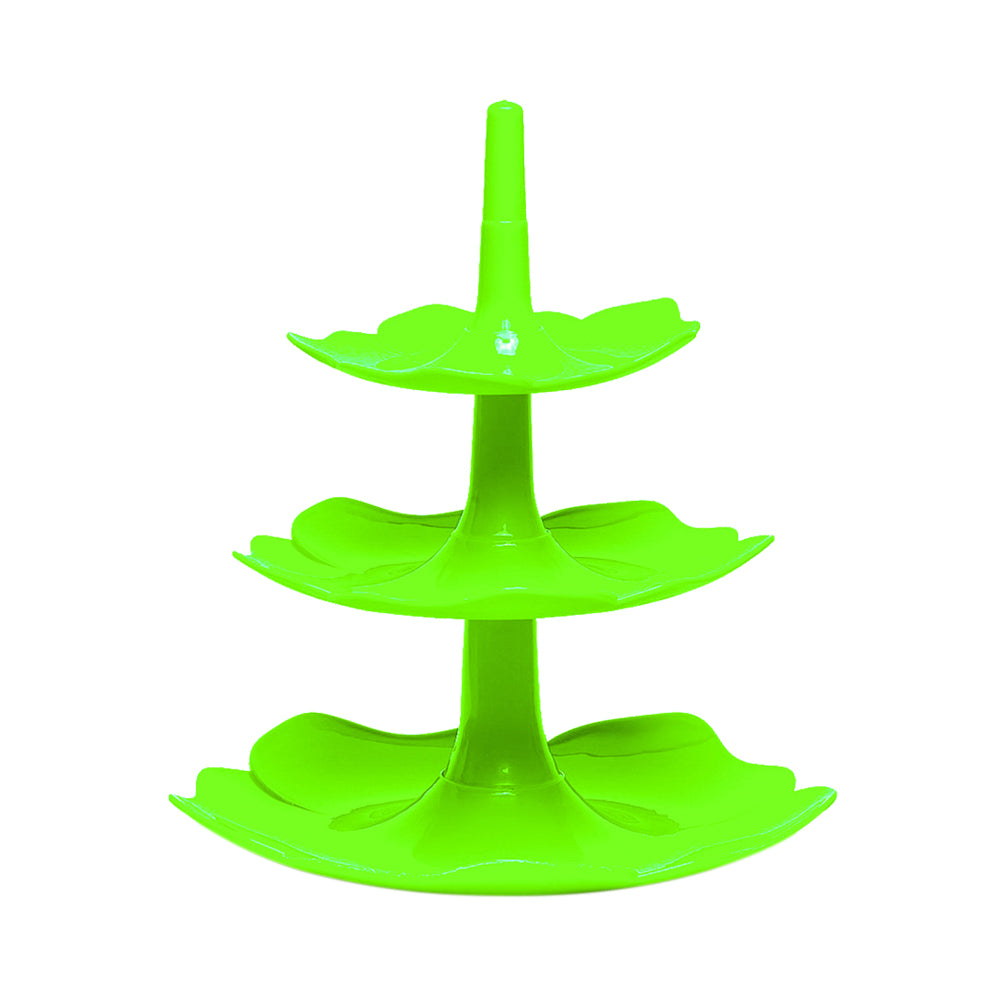 Juego de bandejas plásticas con forma de flor en tres pisos para cupcakes desarmable.