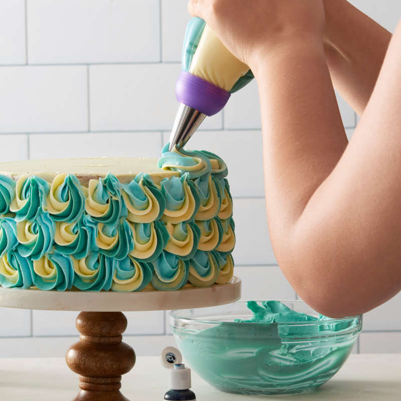 El Kit de decoración de acopladores ColorSwirl de 3 colores tiene todo lo que necesitas para dejar volar tu imaginación! Utiliza el acoplador para mezclar a la perfección 2 o 3 colores y crear un doble remolino o triple remolino de colores. Las piezas del acoplador conectan múltiples bolsas de decoración, lo que le permite mezclar 2 o 3 colores con un simple movimiento de tu mano. Simplemente conecta y asegura el acoplador con el anillo incluido. Utiliza las mangas de decoración de 16 pulgadas incluidas para decorar cupcakes y tortas. Alterna diferentes boquillas para variar tu decoración. El kit viene con las boquillas 1M y 1A, pero también funciona perfectamente con las boquillas 2C y 4B (se venden por separado).