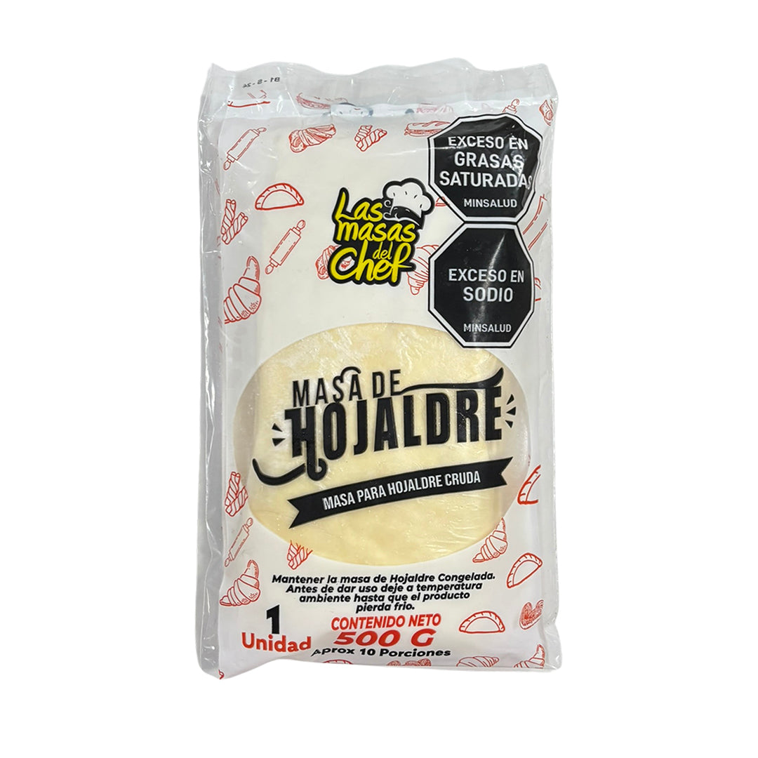 Masa cruda congelada para preparar hojaldre presentación de 500gr.