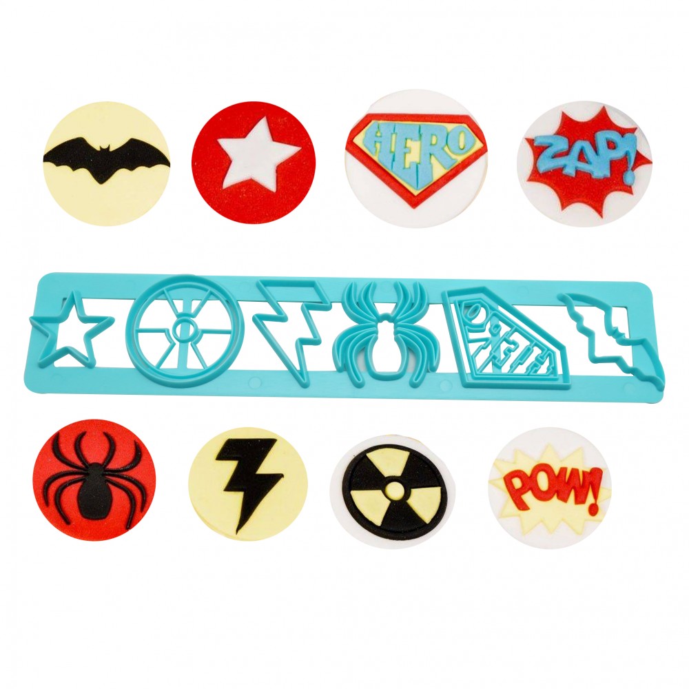 Plantilla de cortadores de spiderman, fácil de almacenar y limpiar, con motivos para cada molde de galleta. Solo con una presión retiras 6 piezas de masa al mismo tiempo.