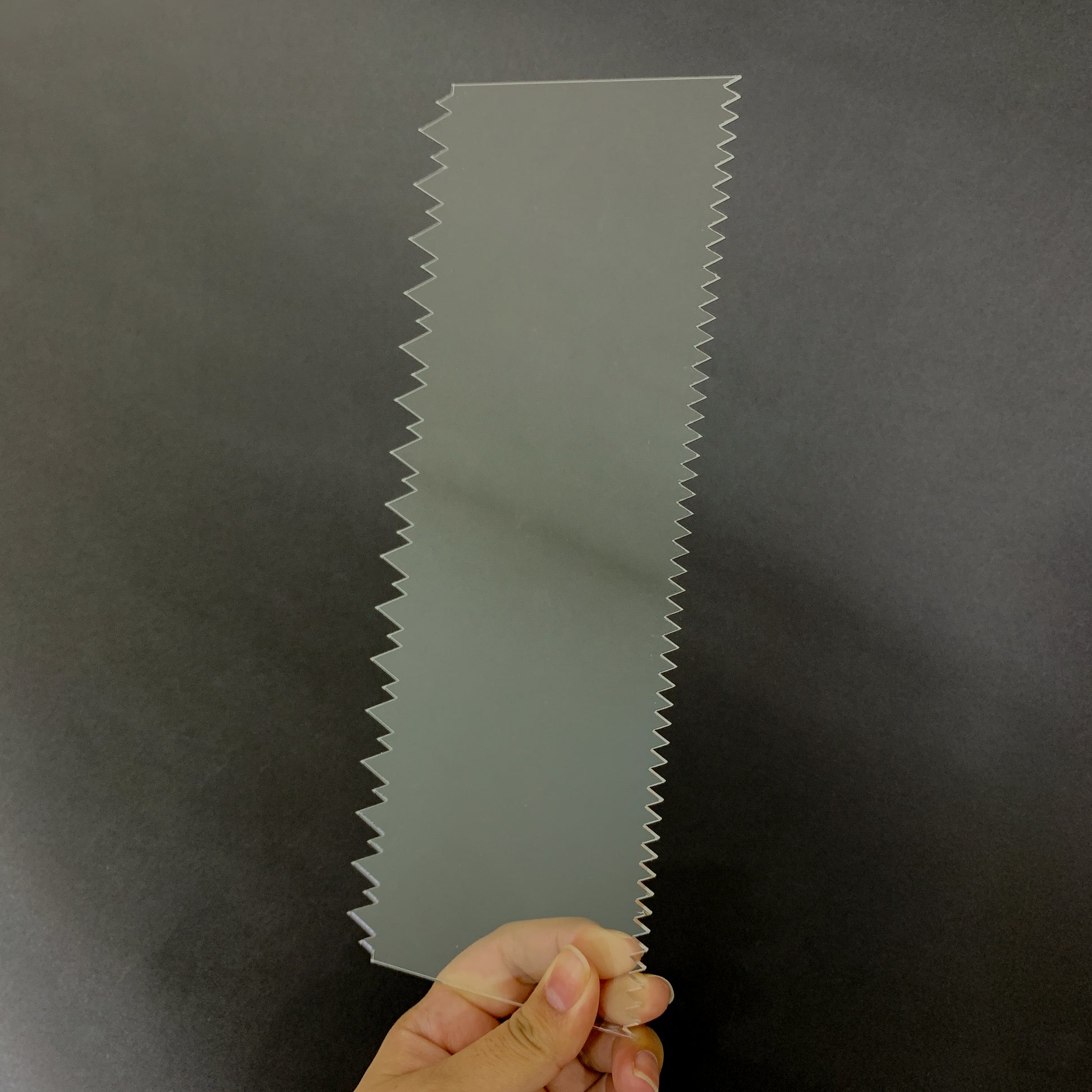 Scraper texturizador en acrílico, diseñado de forma ergonómica, y con hendiduras del tamaño ideal para evitar desperdicio de producto. Con dos diseños diferentes (una a cada lado) Permite obtener un acabado profesional en los laterales de tortas decoradas con buttercream, royal icing, nata, ganache o crema.