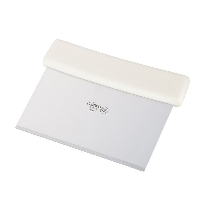 Raspe con hoja de acero inoxidable, cortador y con mango de polipropileno está fabricado Divida su masa para el control de las porciones o simplemente asegúrese de que está utilizando su masa de manera eficiente con este raspador de masa. Este raspador de masa de acero tiene una medida de 15.24 cm x 7.62 cm. Úsalo para despegar o recoger una pasta, crema, chocolate derretido de las paredes de un recipiente o una placa.