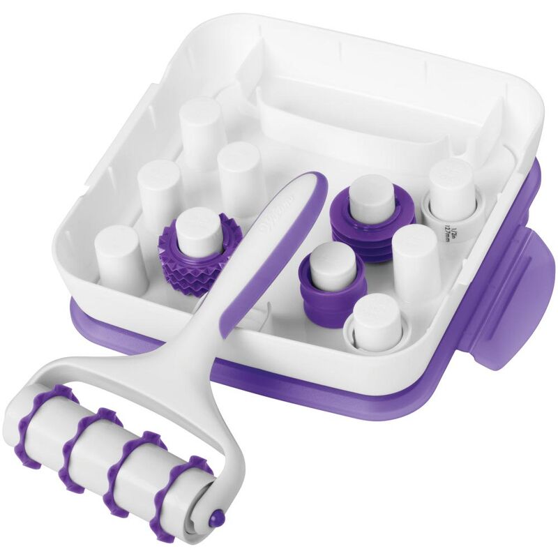 Este set te permite elegir tu propia combinación de diseño y crear tiras de fondant perfectamente uniformes de distintos tamaños y diseños. ¡Las tiras son ideales para hacer hermosos lazos, bordes, diseños a rayas y más!