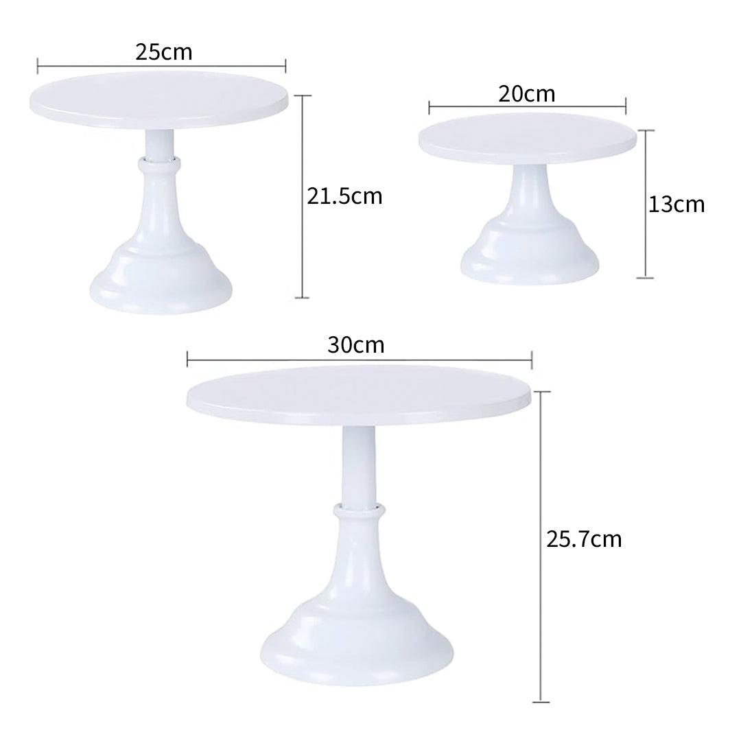 Juego de mesas para exhibir por 3 unidades en distintos tamaños, fabricados en hierro de alta calidad es de uso seguro, robusto y duradero. Son ideales para todo tipo de eventos y fiestas, como graduaciones, bodas, fiestas de cumpleaños, fiestas de té, exhibirán perfectamente pasteles, galletas, donas, cupcakes, frutas, etc. Se puede colocar en interiores o exteriores para proporcionar deliciosos postres.