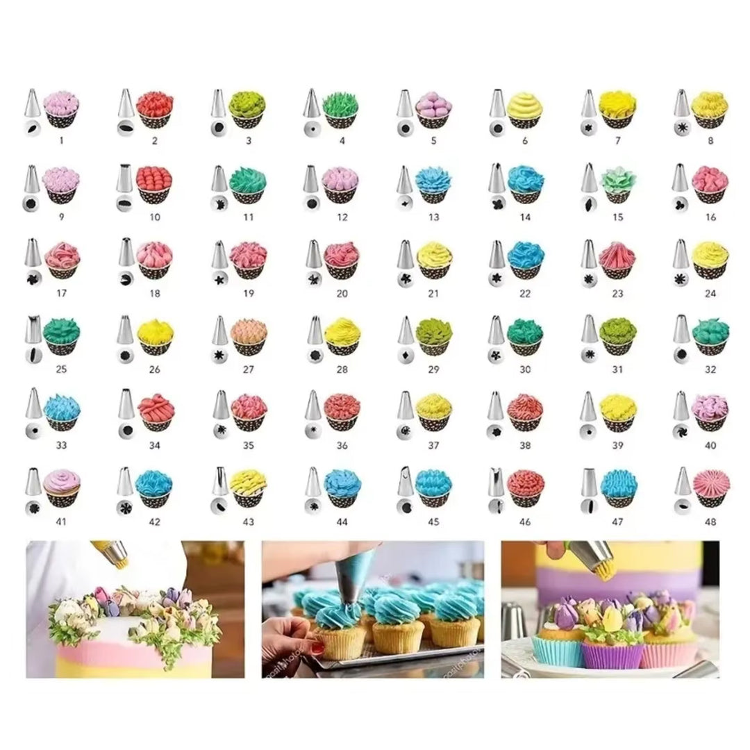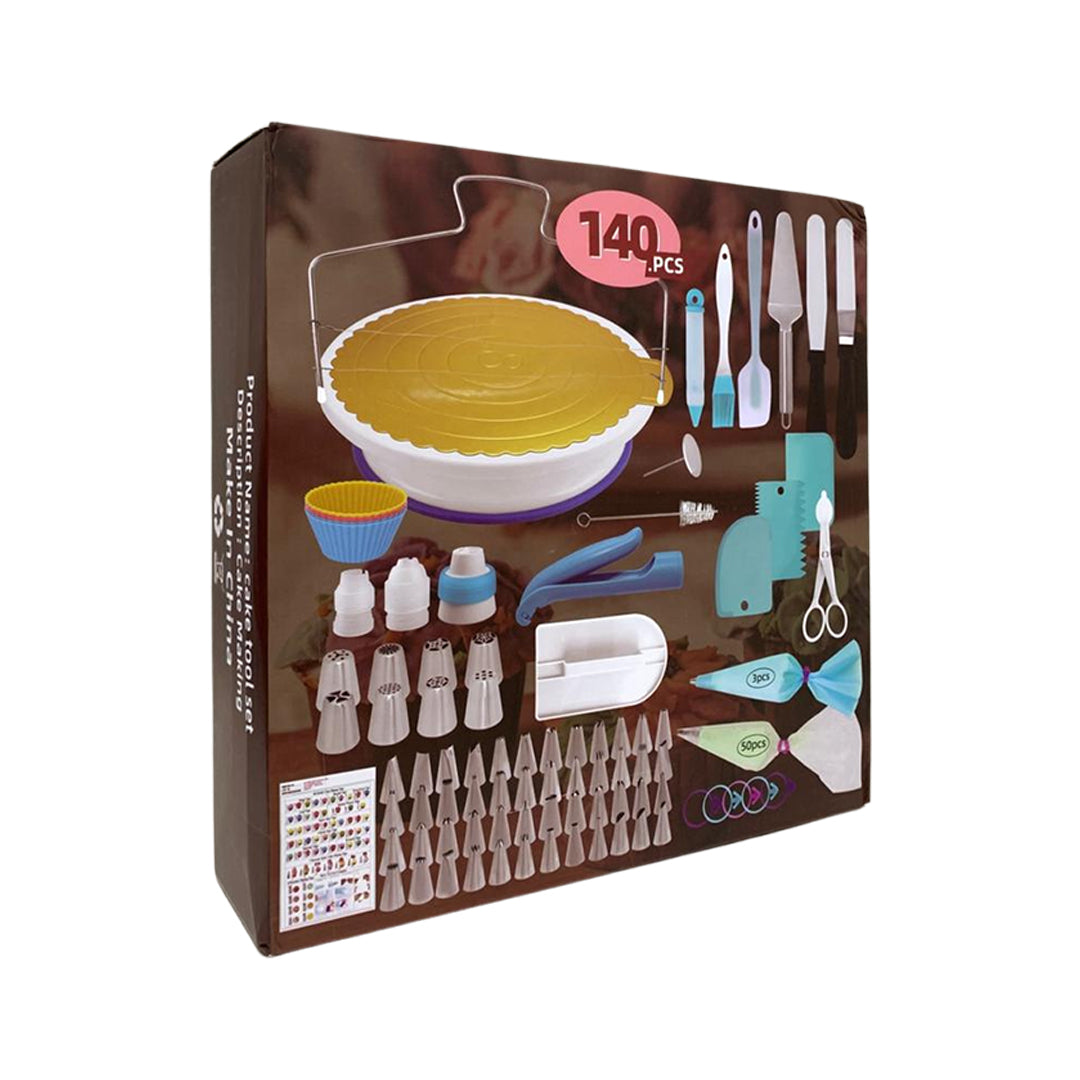 Kit de suministros de decoración de pasteles de 140 piezas, incluye soporte para plato giratorio y herramientas para decorar.