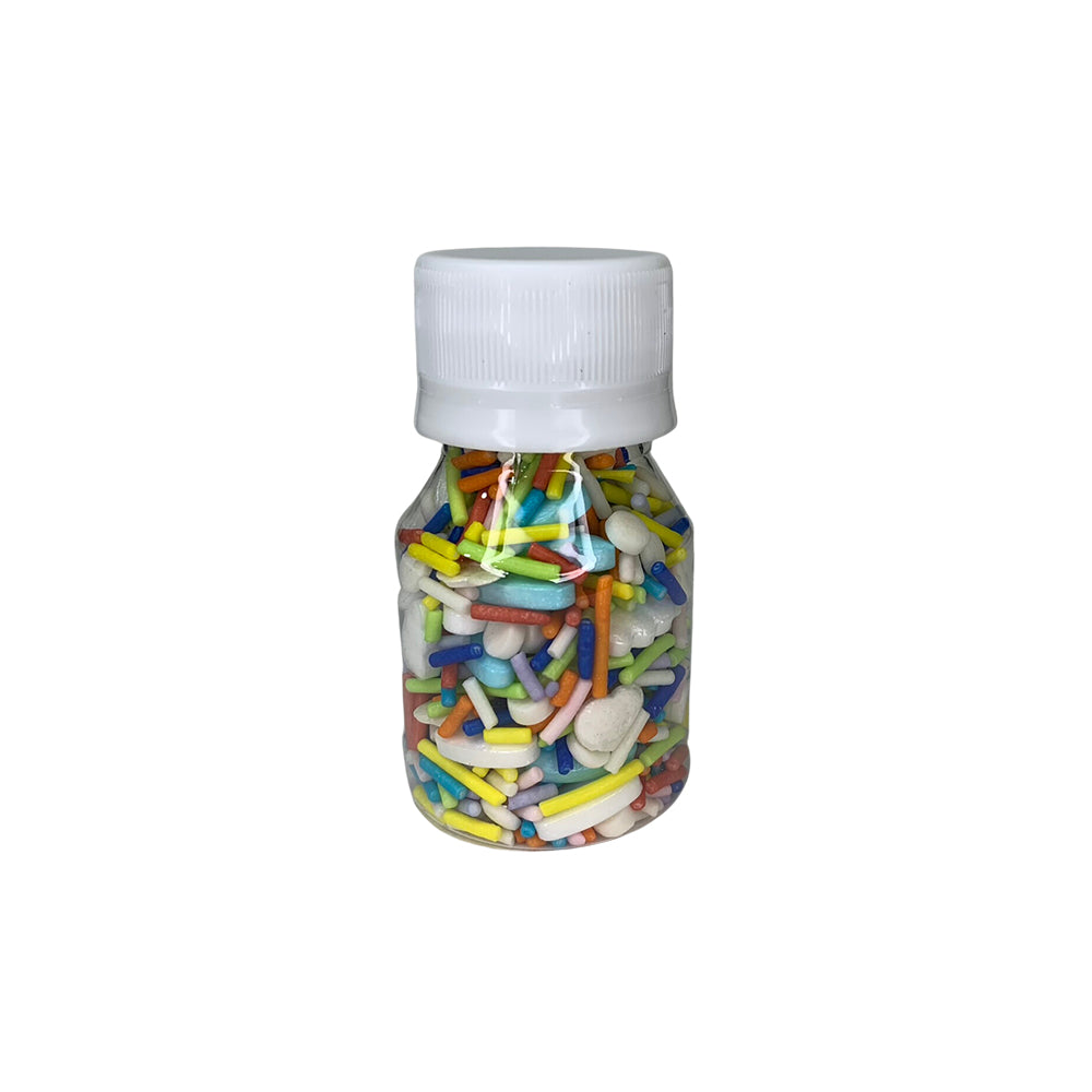 Gragea comestible surtida en forma nubes y jimmies coloridos, especial para decoración de tortas, cupcakes, galletas y una gran variedad de creaciones en bizcochería, pastelería, galletería y heladería.