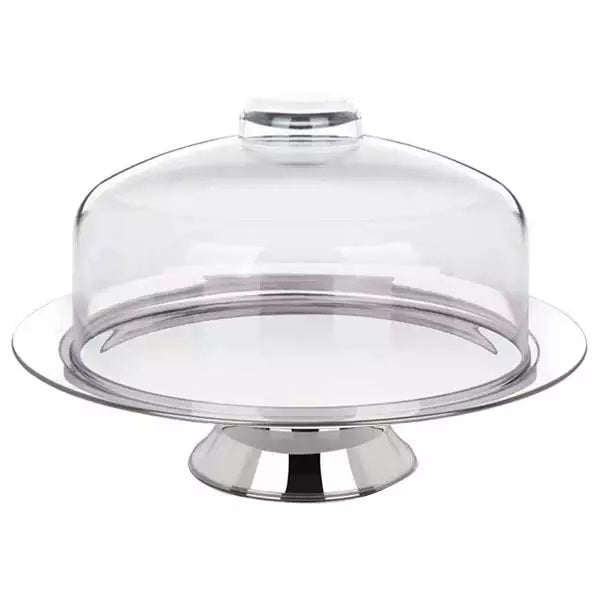 Tortera redonda con pedestal en acero inoxidable y tapa en poliestireno.