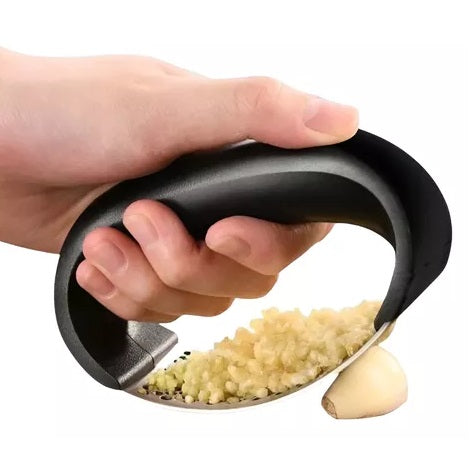 - Coloca el ajo debajo del triturador de ajo y presiona hacia adelante y hacia atrás, luego puedes aplastarlo fácilmente en ajo picado.